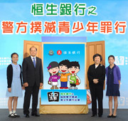 透過支持兩年一度的「恒生銀行之協助警方撲滅青少年罪行比賽」,本行與香港警務處攜手合作培養青少年,助他們建立正確價值觀,成為良好公民。於2012年,比賽共吸引超過260,000青少年參與,創歷年新高。恒生自1994年起贊助此計劃,2012年以「友愛. 齊滅罪」為主題,宣揚「抗毒」、「反盜竊」及「反欺凌」三大信息。