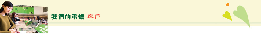 我們在提供產品和服務的過程中,以創新與誠信兼備為原則提供優質服務,包括針對客戶具體需要為他們提供清晰及誠實的資訊、在業務往來上保持開放交流、問責,以及尊重客戶私隱。