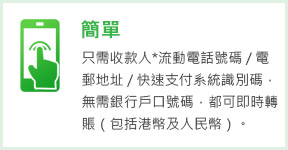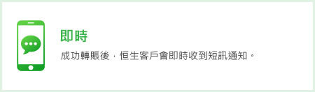 「恒生轉賬易」P2P付款服務^,透過恒生個人流動理財服務應用程式,盡享簡單、即時、免費的轉賬服務。