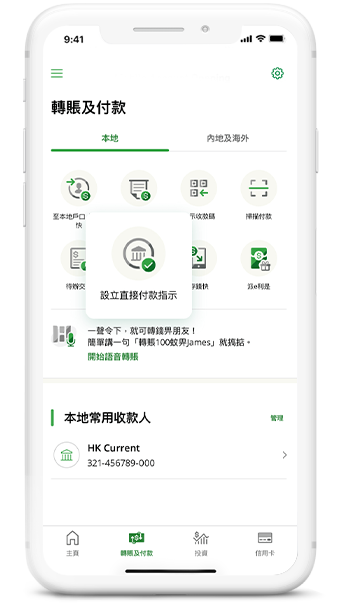 授權指定收款人按協定從你嘅恒生戶口扣款,一般用於支付每月金額不固定嘅賬單或商戶繳費,例如係水電煤。