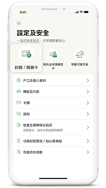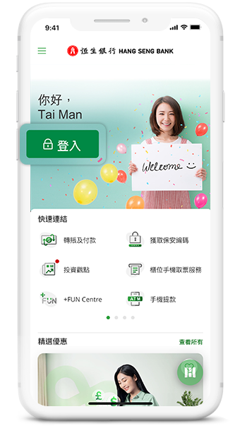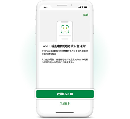 將手機綁定到App後,你可啟動生物認證功能(即指紋或面容識別認證)。比起輸入密碼,這種方式讓你可以更迅速登入App及驗證交易,無需擔心密碼被旁人看到,安全性更高!