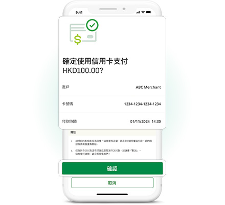 網上購物:進行「無卡支付」交易時,App會即時顯示交易細節,你可以在核實清楚後再確認,無需收取「一次性密碼」短訊,更安全方便。