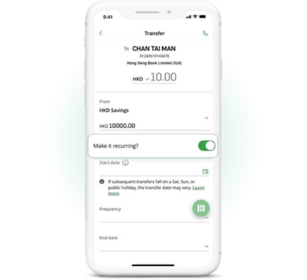 Both transfer functions can be set up via the Hang Seng Mobile App, allowing you to amend or cancel instructions2 anytime. This saves you time from queuing at the branch.