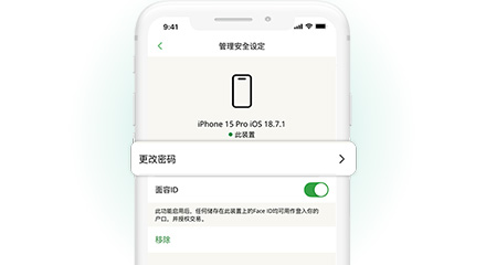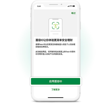 将手机绑定至App后,你可启用生物识别功能(即指纹或面容识别)。相比输入密码,这种方式让你能更快速登入App并验证交易,无需担心密码被他人窥见,安全性更高!