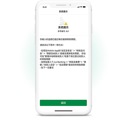 即使已设定“已登记收款人每日转账限额”,都有可能因为转账金额超出改收款人的个别每日转账限额而导致无法转账。