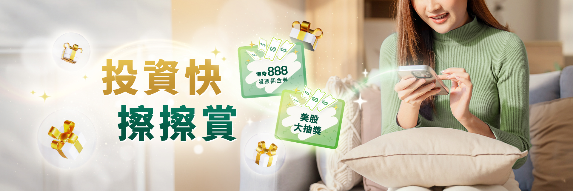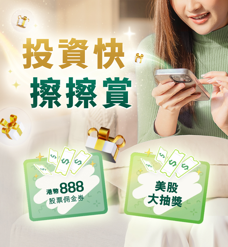 由開戶起計首3個月網上買賣港股、美股或A股無上限$0佣金,隨後即自動參加「投資快擦擦賞」,