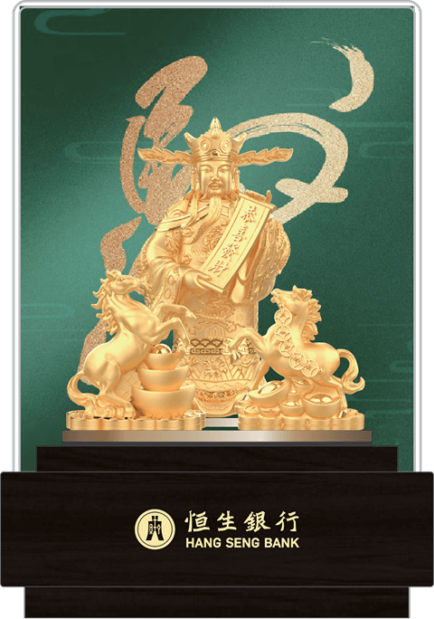 - 合資格客戶成功開立恒生商業綜合戶口,可獲得1次機會參加抽獎以獲得財神鍍金擺件獎品。