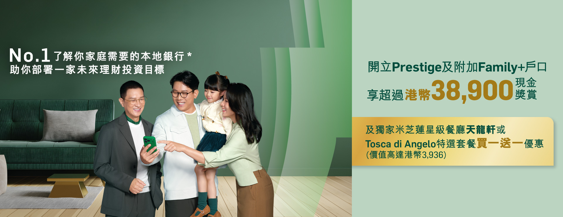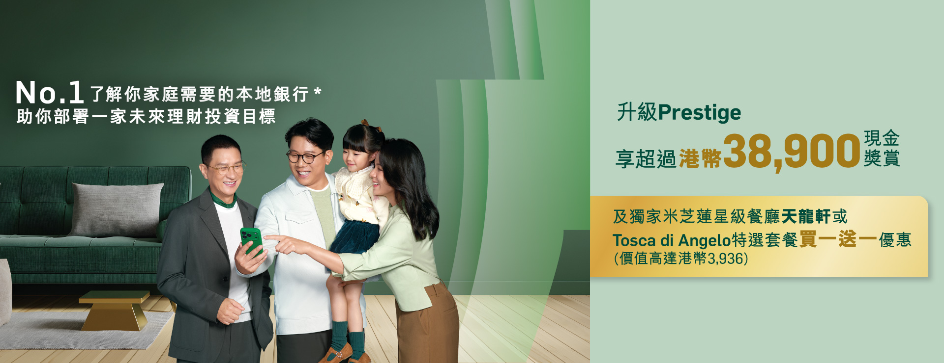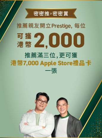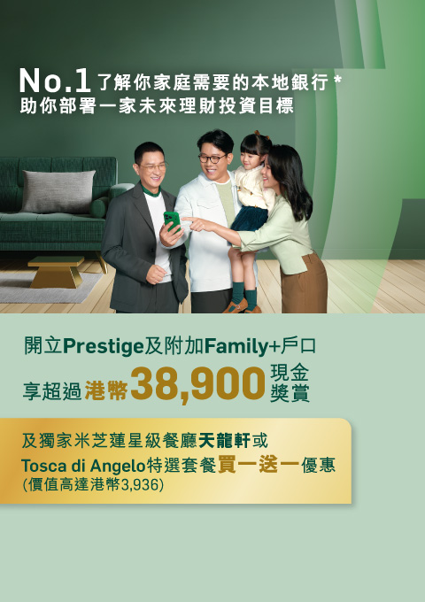 合資格客戶新開立或提升至Prestige戶口並開立合資格美元定期存款*,可享特優年利率3.8%34