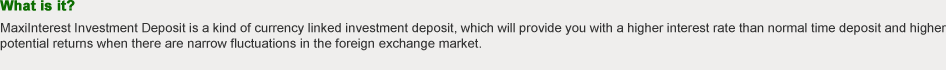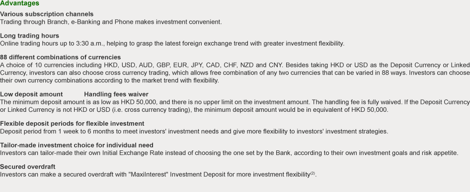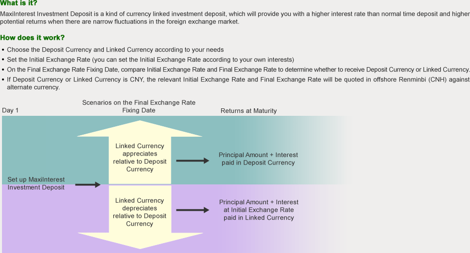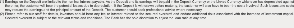 Renminbi (RMB) is subject to foreign exchange control by the PRC government and thus investors investing in the MaxiInterest Investment Deposit involving RMB are subject to the currency risk of RMB. |