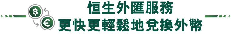 * 只限於恒生Mobile App、恒生個人e-Banking進行之兌換交易。