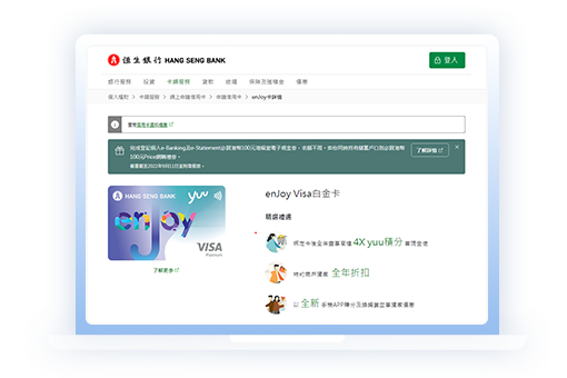 積分迎新獎賞及永久免年費。立即申請,馬上enJoy!