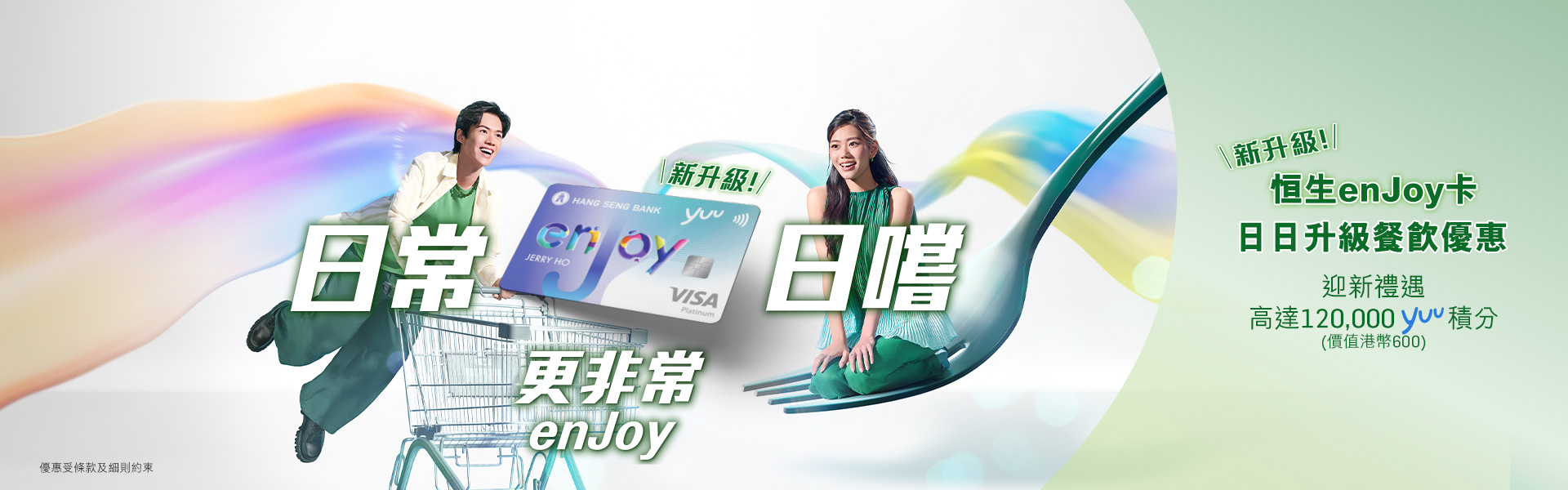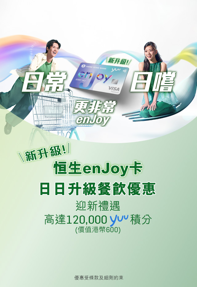 無論「日常消費」,定係「日嚐消費」,用恒生enJoy卡都可以一卡enjoy!