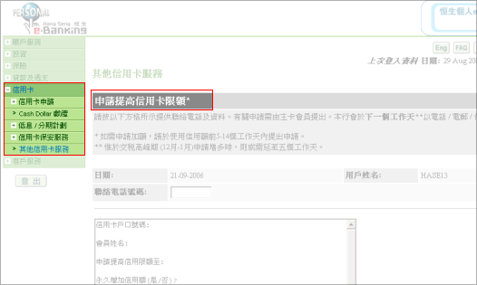 ³z ¹L Ó ¤H e-Banking ¶ñ ¼g ¤Î »¼ ¥æ¡u¥Ó ½Ð ´£ °ª «H ¥Î ¥d ÃB¡vªí ®æ ( ©ó ªA °È Äæ ¿ï ¾Ü¡u«H ¥Î ¥d¡v¤Î¡u¨ä ¥L «H ¥Î ¥d ªA °È¡v)¡C¦³ Ãö ¥Ó ½Ð »Ý ¥Ñ
