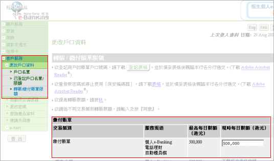 Ó ¤H e-Banking µn °O ½ã ³æ ¥Ó ½Ð / × q ªí ®æ